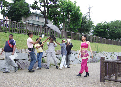 「ダンスダンスダンス」というダンスシーンのエキストラ8人位で踊るシーンです。インド領事館がテロのため、来日しての撮影となりました。