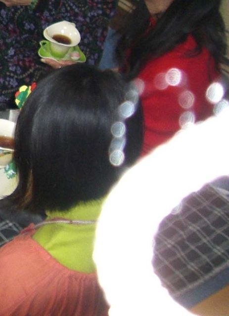 添付した写真は①皆で地球世界感謝の祈りを行った時に現われた光(パソコンの画面上拡大)、②六芒星ワークの後の休憩に現われた光(右下)、③その拡大写真です。全て同じ宇宙銀河系が包括された曼陀羅の光のように見えます。